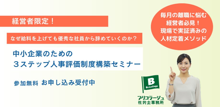 【中小企業経営者限定】なぜ給料を上げても優秀な社員から辞めていくのか?半年で変化を実感できる3ステップ人事評価制度構築セミナー